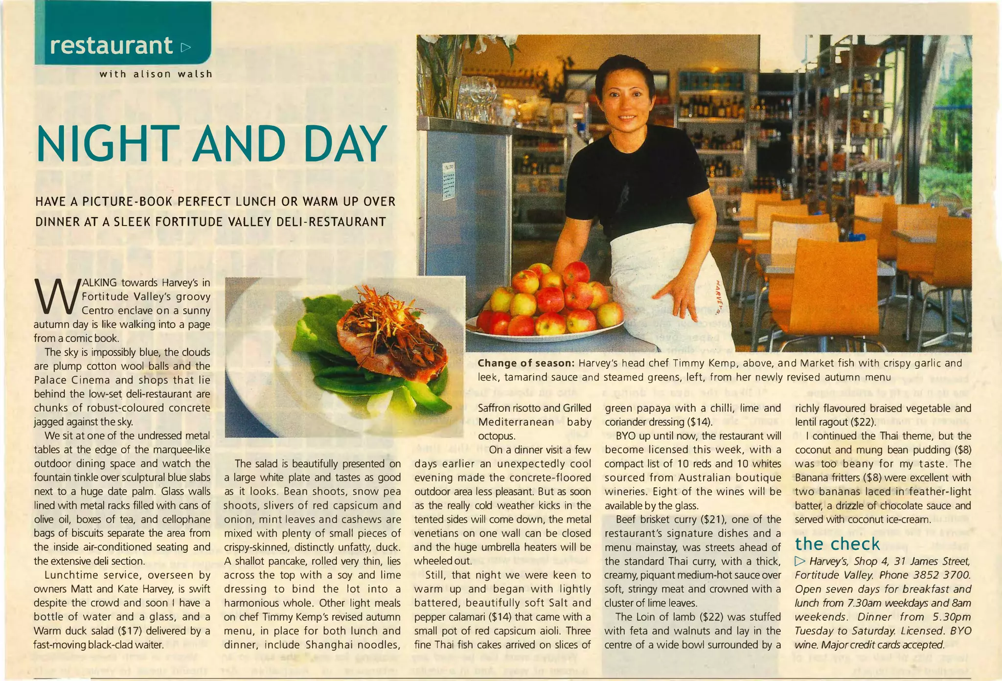 Harvey's is a deli-restaurant located in Fortitude Valley that offers both lunch and dinner in a bright, airy setting. The salad and small plates options on the revised autumn menu sound fresh and flavorful. Dishes like warm duck salad, salt and pepper calamari, and beef brisket curry incorporate global influences in creative ways. Both the outdoor and indoor spaces provide welcoming atmospheres for enjoying high-quality, seasonal dishes.