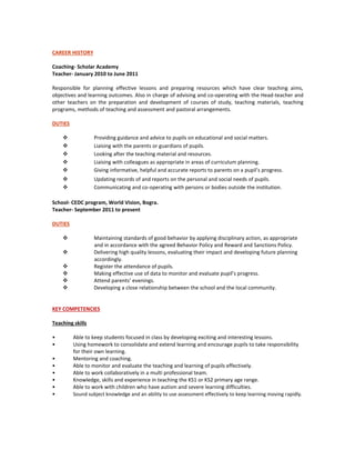 Hasan is an experienced and energetic teacher seeking a position where he can make a positive impact on student progress using his teaching, assessment, and behavior management skills. He has over 10 years of teaching experience and a strong record of student success, discipline, and safety. Hasan is looking for a forward-thinking school that aims to develop talented teachers and wants to inspire students to reach their potential.