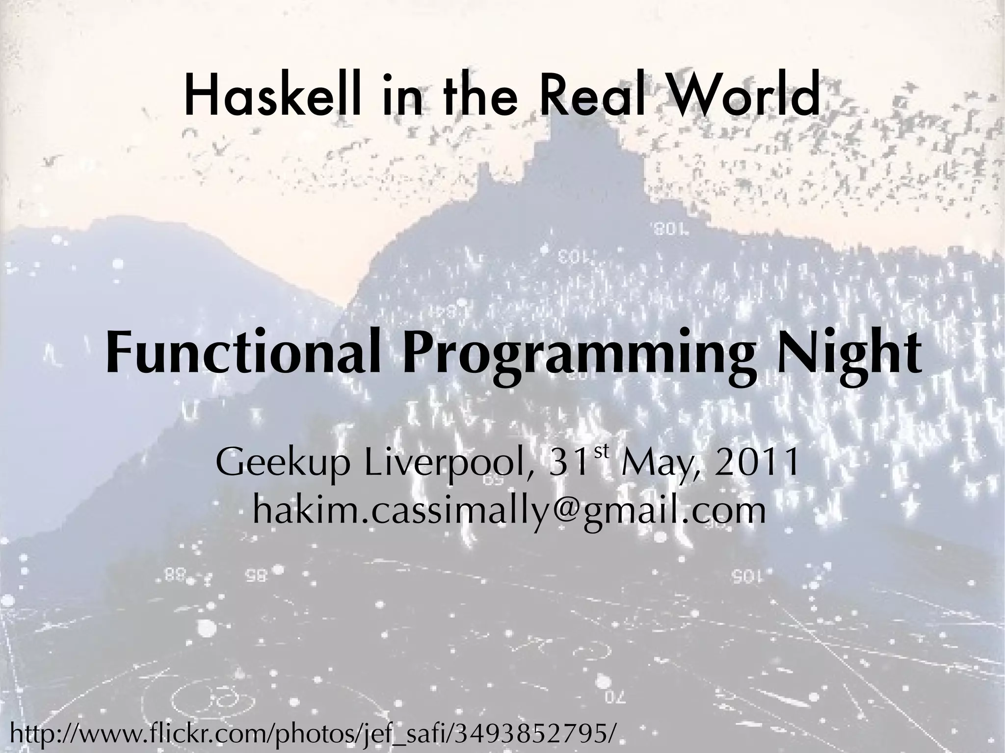 The document discusses functional programming, particularly focusing on Haskell, its key features such as purity, laziness, strong typing, and its applications in real-world scenarios like quiz modeling and database systems. It contrasts functional programming with imperative programming, emphasizing the benefits of reduced code complexity and improved clarity. Additionally, it presents various Haskell examples and touches on the language's potential for mainstream adoption and its advantages for future programming paradigms.