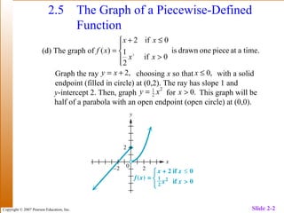 This document discusses piecewise-defined functions and their graphs. It contains the following key points: