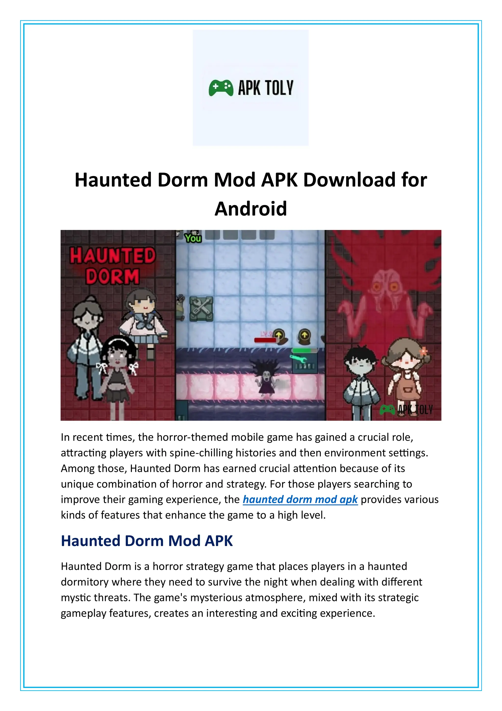 In recent times, the horror-themed mobile game has gained a crucial role, attracting players with spine-chilling histories and then environment settings. Among those, Haunted Dorm has earned crucial attention because of its unique combination of horror and strategy. For those players searching to improve their gaming experience, the haunted dorm mod apk provides various kinds of features that enhance the game to a high level.