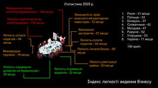 1. Індекс легкості ведення бізнесу 112 96 83 80 76 71