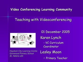 The document discusses the implementation of video conferencing across schools in St. Helens Local Education Authority. It outlines the vision to provide all schools access to high quality video conferencing. Over 75 video conferencing endpoints have been deployed across primary, secondary, special and pupil referral units. Schools have been provided with training and support to use video conferencing for curriculum development, collaboration, and professional development. Examples of potential video conferencing uses include lessons, expert interviews, competitions, and networking between schools.