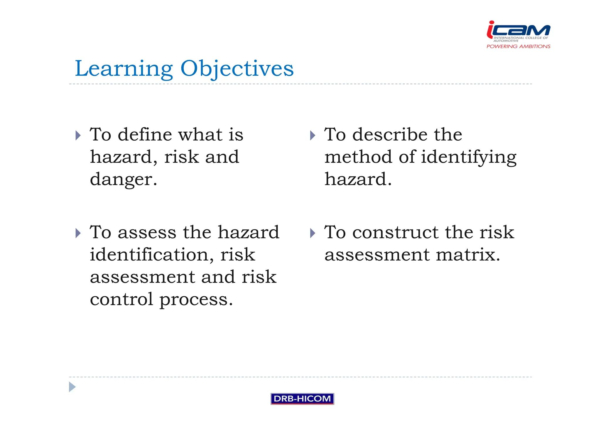 This document discusses hazard identification, risk assessment, and risk control (HIRARC). It defines key terms like hazard, risk, and danger. It describes the process of identifying hazards, assessing risks qualitatively or semi-quantitatively, and constructing a risk matrix. The document outlines when risk assessments should be carried out, who should be involved, and methods like job safety analysis, HAZOP, and fault tree analysis.