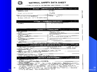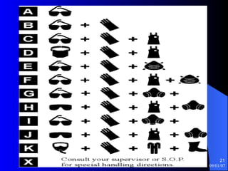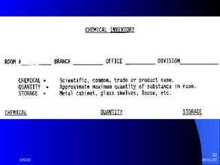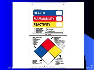This training program aims to teach participants how to identify hazards, read container labels, understand material safety data sheets, and follow safe work procedures when handling hazardous materials. It explains that the Hazard Communication standard requires employees working with hazardous chemicals to be trained. The document then outlines general hazard classifications, labeling requirements, locations of hazard information, and responsibilities of supervisors to ensure training is provided.