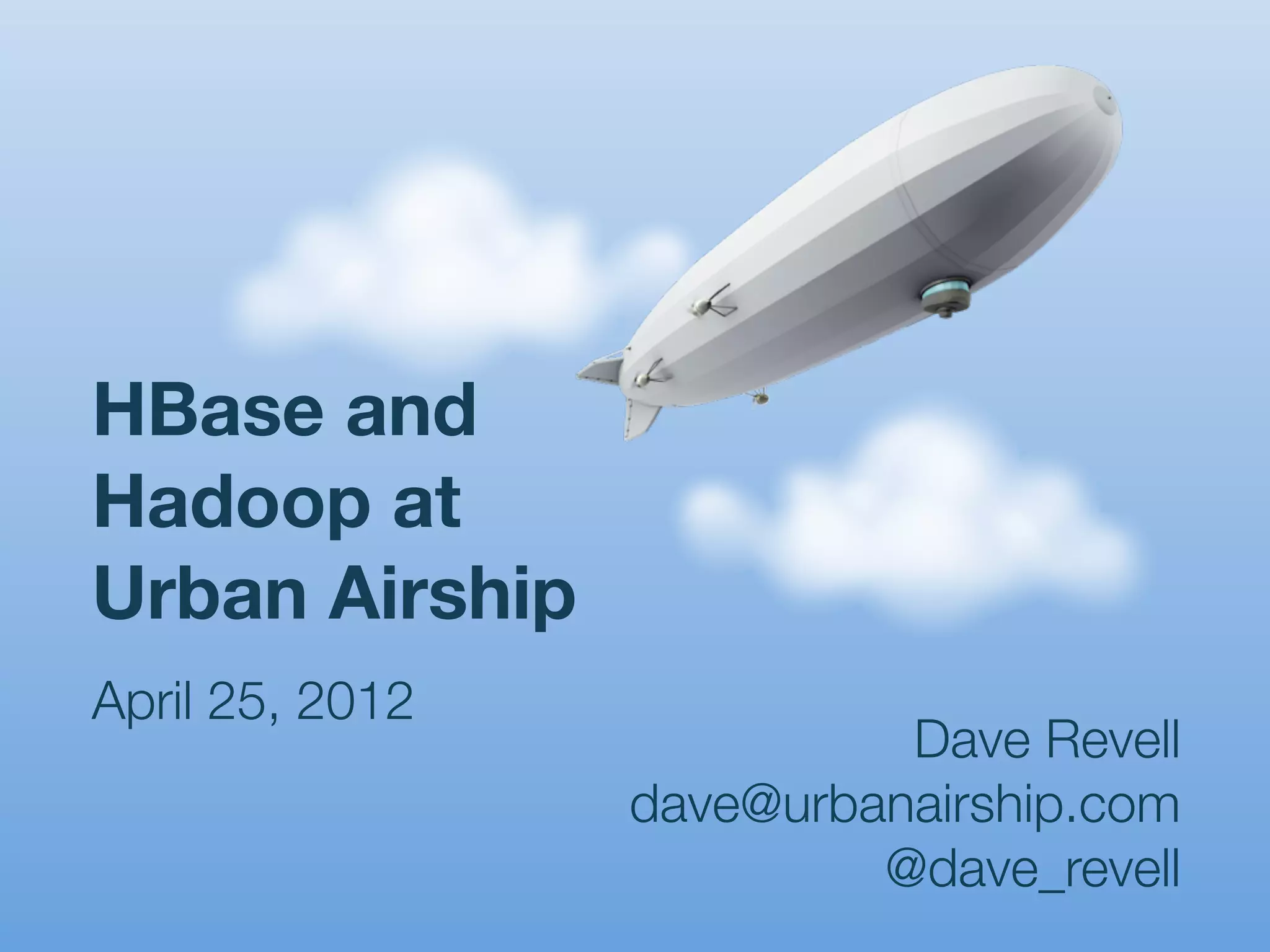 The document discusses the implementation of HBase and Hadoop at Urban Airship, focusing on their goals, architecture, and event analysis processes for near real-time reporting from mobile devices. It highlights the benefits of using HBase for querying Hadoop data and addresses common issues encountered with MapReduce. Additionally, it outlines strengths and weaknesses in Urban Airship's design and processing strategies.