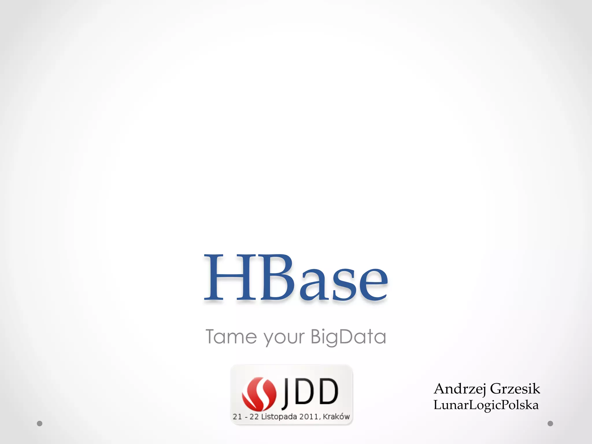 HBase is an open-source, distributed, scalable BigTable-like database built on top of Hadoop that allows for the fast storage and retrieval of large amounts of structured and unstructured data across clusters. It provides a fault-tolerant way of storing large amounts of sparse data and supports real-time read/write access to this data. HBase organizes data into tables divided into rows and columns and is well-suited for applications that benefit from random, real-time read/write access to large datasets.