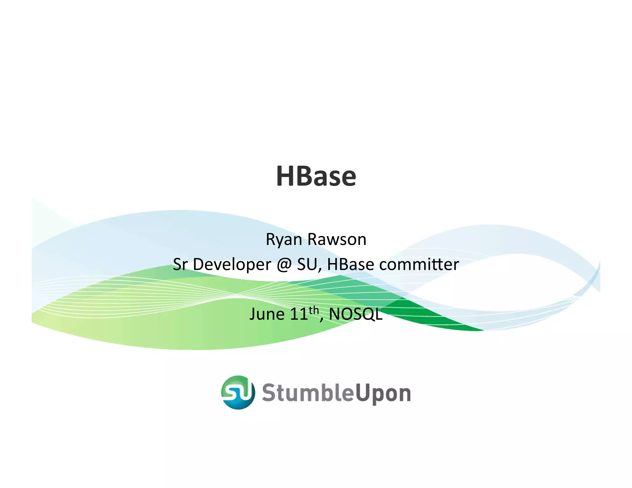 HBase is an open source, distributed, column-oriented database modeled after Google's Bigtable that runs on top of Hadoop. The presenter discusses HBase's architecture, performance improvements in version 0.20 including major gains from new file formats and compression, and Stumbleupon's extensive use of HBase including supporting over 9 billion rows in a single table with high import and read speeds.