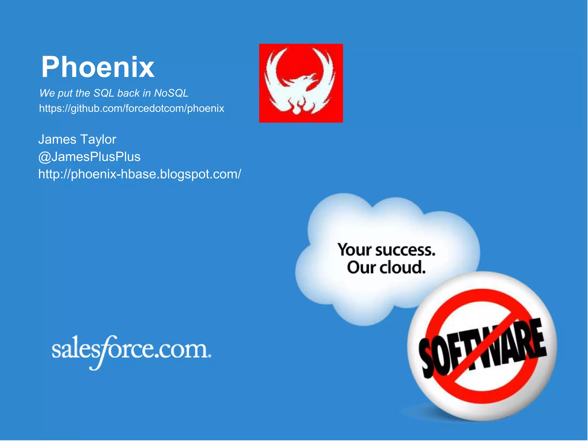 This document discusses Phoenix, an open source SQL skin for HBase. Phoenix provides a SQL interface and JDBC driver for HBase, allowing users to query HBase data using SQL and leveraging existing SQL tools and frameworks. It compiles SQL queries into efficient native HBase operations, improving performance. Examples demonstrate how Phoenix handles different types of queries, such as aggregating metrics data and finding the longest GC times, through optimizations like skip scans and server-side processing.