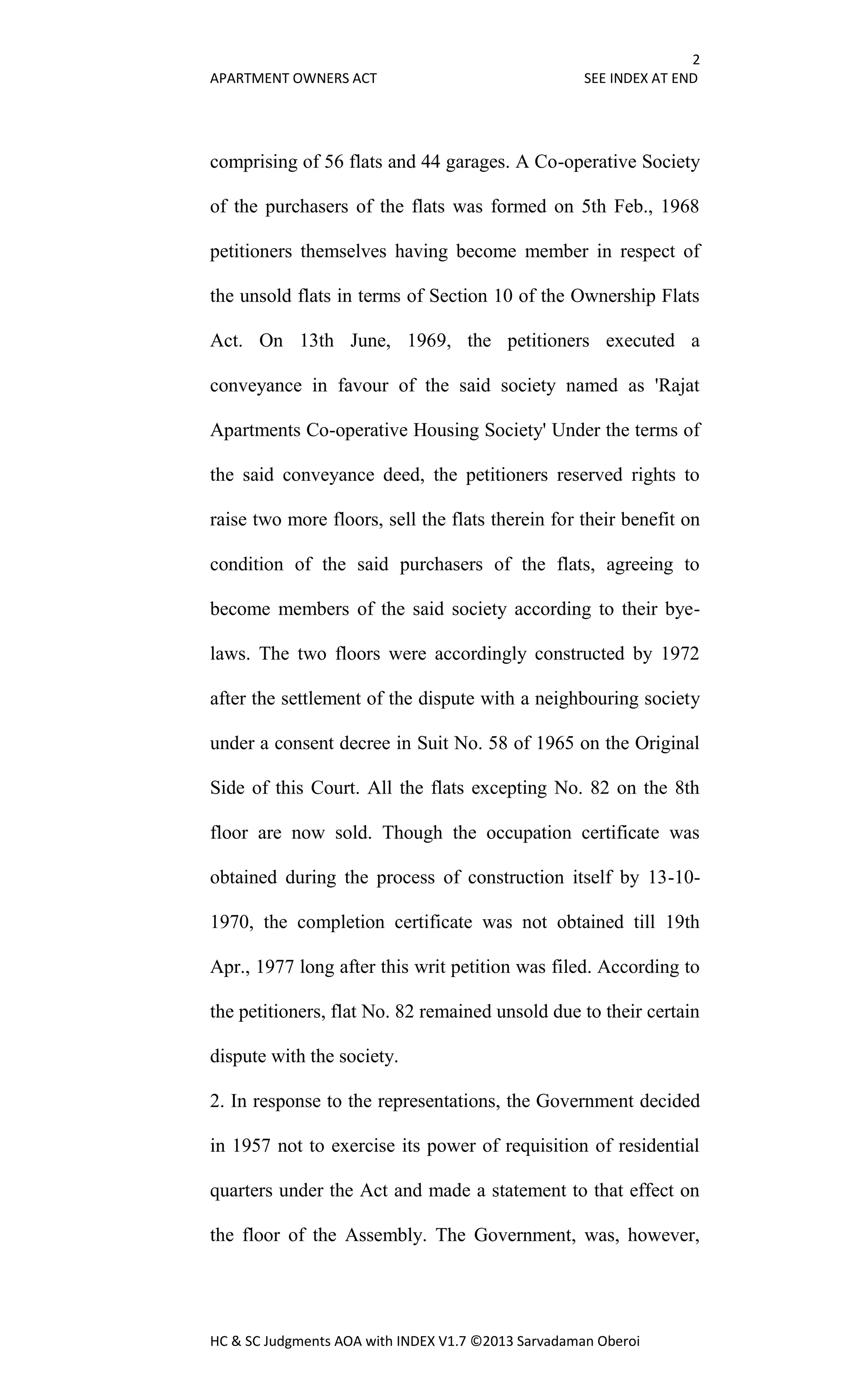 - The petitioner company had constructed an apartment building with the intention of selling the flats. All flats were sold except one (Flat 82), which remained unsold due to a dispute with the housing society.