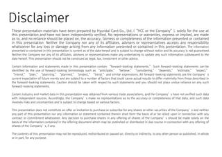 These presentation materialshave been prepared by Hyundai Card Co., Ltd. (“HCC or the Company”), solely for the use at
