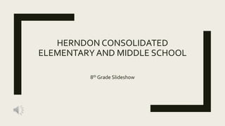The document is a congratulatory slideshow for 8th graders at Herndon Consolidated Elementary and Middle School. It acknowledges the students' achievements and wishes them success as they transition to Wyoming East High School. The message emphasizes the lasting connection to their school identity.