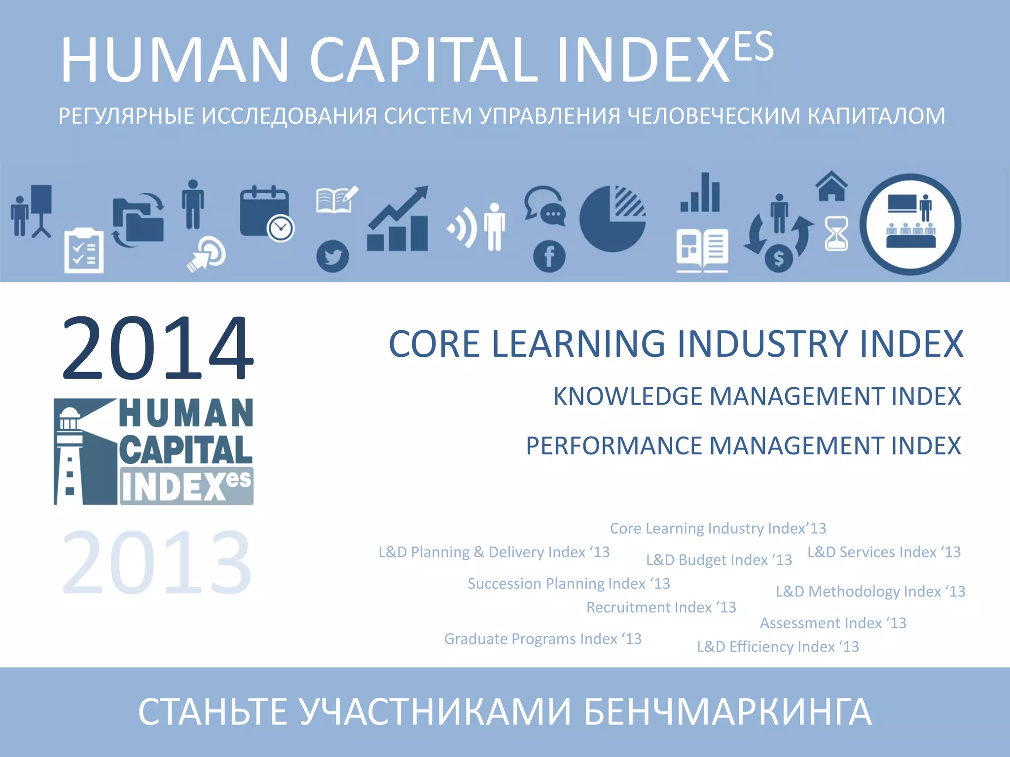 Документ содержит данные о регулярных исследованиях систем управления человеческим капиталом, включая индексы обучения, управления знаниями и производительности. Он подчеркивает важность HR-аналитики для повышения эффективности бизнеса и предлагает инструменты для оценки и улучшения организационной эффективности. В документе также представлены результаты исследований, ключевые показатели и стоимость участия в бенчмаркинге.