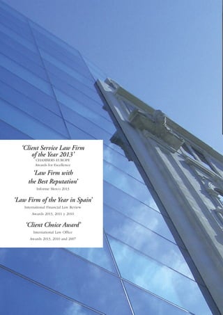 Garrigues is a leading Spanish law firm with over 2,000 professionals. It has a long history dating back to 1941 and extensive international experience. The firm provides legal and tax services across various industries with a focus on human capital services. Garrigues' human capital department consists of over 25 professionals offering comprehensive compensation, benefits, and HR services to clients.