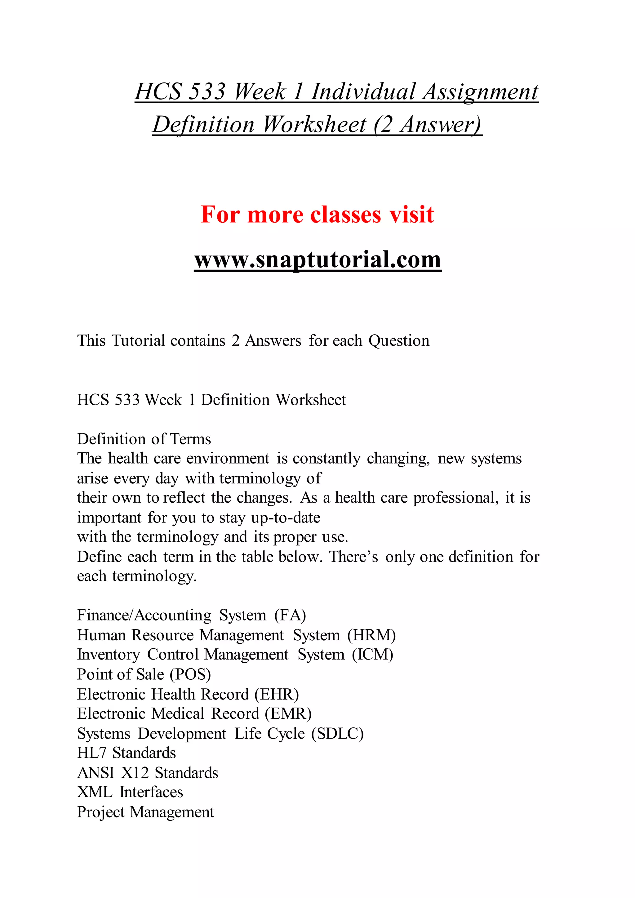 The document outlines various individual and team assignments from the HCS 533 course, focusing on topics such as healthcare information systems, database management, electronic medical records, and security/privacy issues in healthcare. It includes assignments that require students to define terminology, analyze differences in database types, evaluate historical changes in healthcare operations, assess electronic medical records, and create security plans for potential disasters. Additionally, the document emphasizes the importance of proper reference citing and APA format in academic writing.