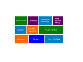 This document provides information on programming with HDInsight including important port numbers, using WebHDFS and WebHCat to interact with HDFS and Hive, running MapReduce jobs with .NET, and using Mahout for machine learning tasks like classification, clustering, and collaborative filtering recommendations.