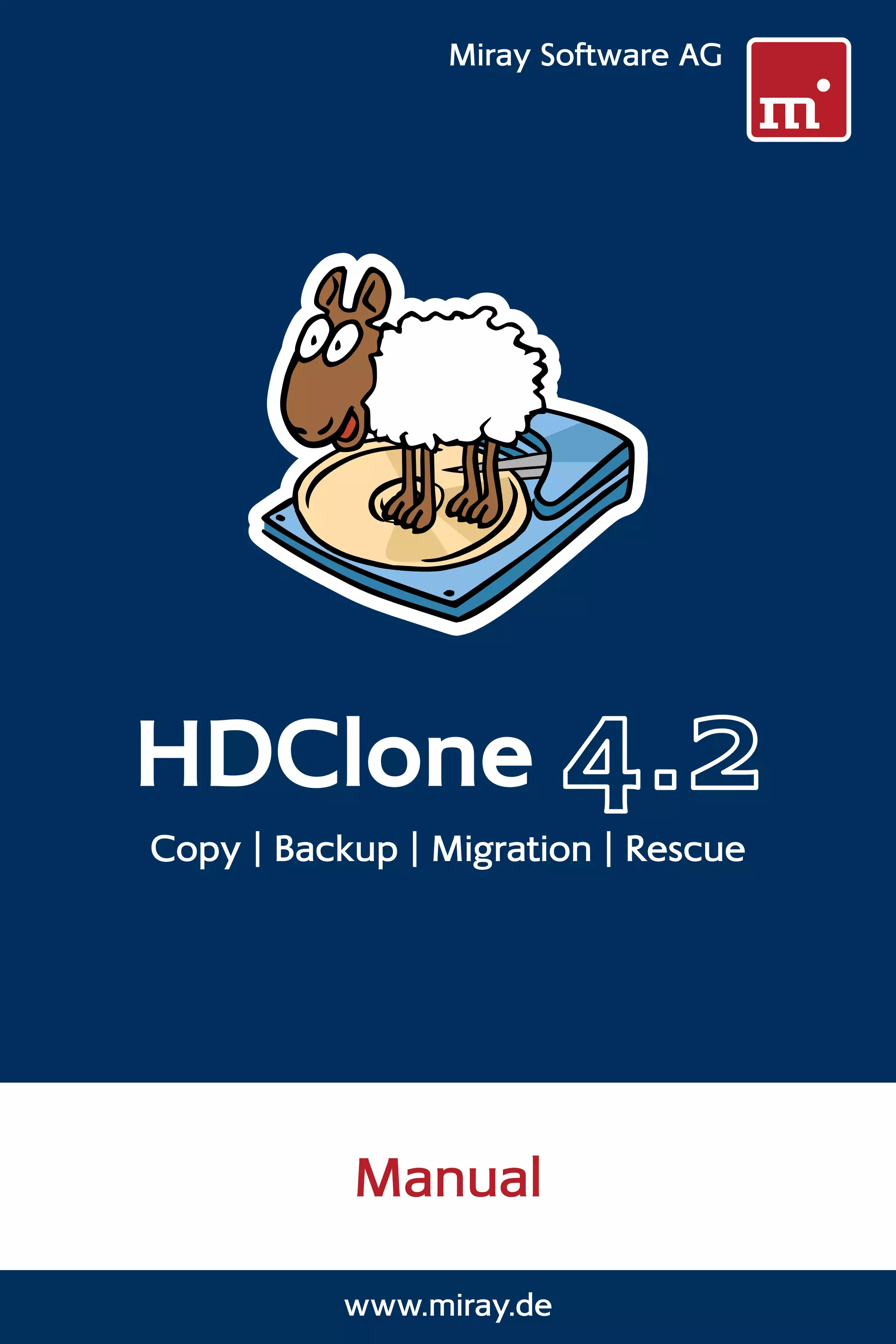 This document is the user manual for HDClone, a software program for copying, backing up, migrating, and rescuing hard disks. It provides instructions on installing HDClone, supported hardware, and using the program. Key features covered include copying disks while the system is running, creating disk images, and duplicating master system installations.