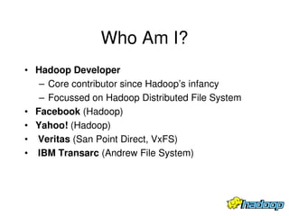 The document summarizes Apache Hadoop, an open-source software framework for distributed storage and processing of large datasets across clusters of computers. It describes the key components of Hadoop including the Hadoop Distributed File System (HDFS) which stores data reliably across commodity hardware, and the MapReduce programming model which allows distributed processing of large datasets in parallel. The document provides an overview of HDFS architecture, data flow, fault tolerance, and other aspects to enable reliable storage and access of very large files across clusters.