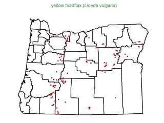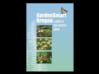 This document provides an overview of invasive species for green industry professionals. It defines invasive species and explains why they are problematic, costing Americans $143 billion per year. Several invasive plants that are issues in Oregon are described, including knotweed, butterfly bush, yellow flag iris, and tamarisk. The document recommends actions professionals can take to prevent the spread of invasives, such as using weed-free materials, properly disposing of plants, and educating clients. Resources for identifying and managing invasive species are also provided.