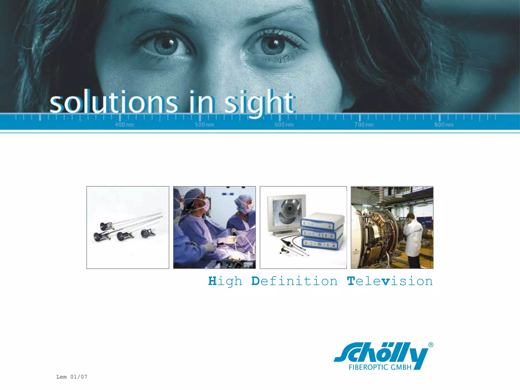 High Definition Television (HDTV) is a digital television standard that offers significantly higher image quality than standard formats like PAL and NTSC, featuring resolutions starting from 720p to 1080p. The document explains the differences between interlaced and progressive scan methods and highlights the importance of resolution, contrast, and lighting in achieving clear images, especially in medical applications. It also details the HD requirements for equipment, such as monitors and connections, to ensure high-quality video transmission.