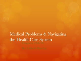 This document summarizes key medical issues related to women's reproductive health. It discusses common breast, uterine, cervical, ovarian, and vaginal conditions as well as cancers that can affect these areas. It also covers pelvic inflammatory disease, endometriosis, hysterectomy, oophorectomy and other procedures. The document emphasizes the importance of screening and early detection for many of these conditions. It stresses gathering information from multiple sources to make informed health care decisions.
