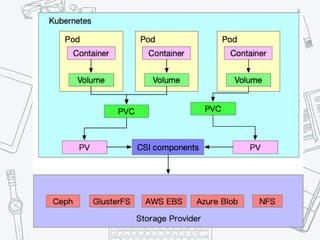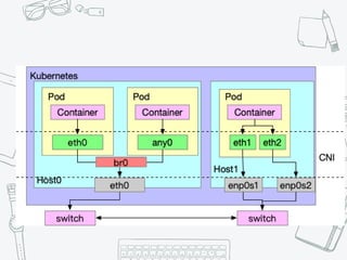 The document discusses containers and Kubernetes, covering their definition, advantages over virtual machines, and how they integrate into IT processes. It details how to work with Docker, including image preparation, container creation, storage management, networking, and the orchestration provided by Kubernetes. The text also highlights Kubernetes architecture, deployment concepts, and networking challenges that users may face.