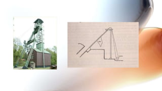 The document provides information about headgears used in mining. It discusses the different types of headgears based on material (steel, concrete), mounting (ground mounted, tower mounted), and hoisting systems (drum, friction). It also covers factors influencing headgear design like height, geometry, depth of shaft, and rope lead/slope calculations. The document is a reference material for various components, classifications, advantages and disadvantages of headgears.