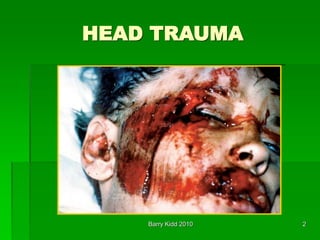 This document discusses head trauma, including: