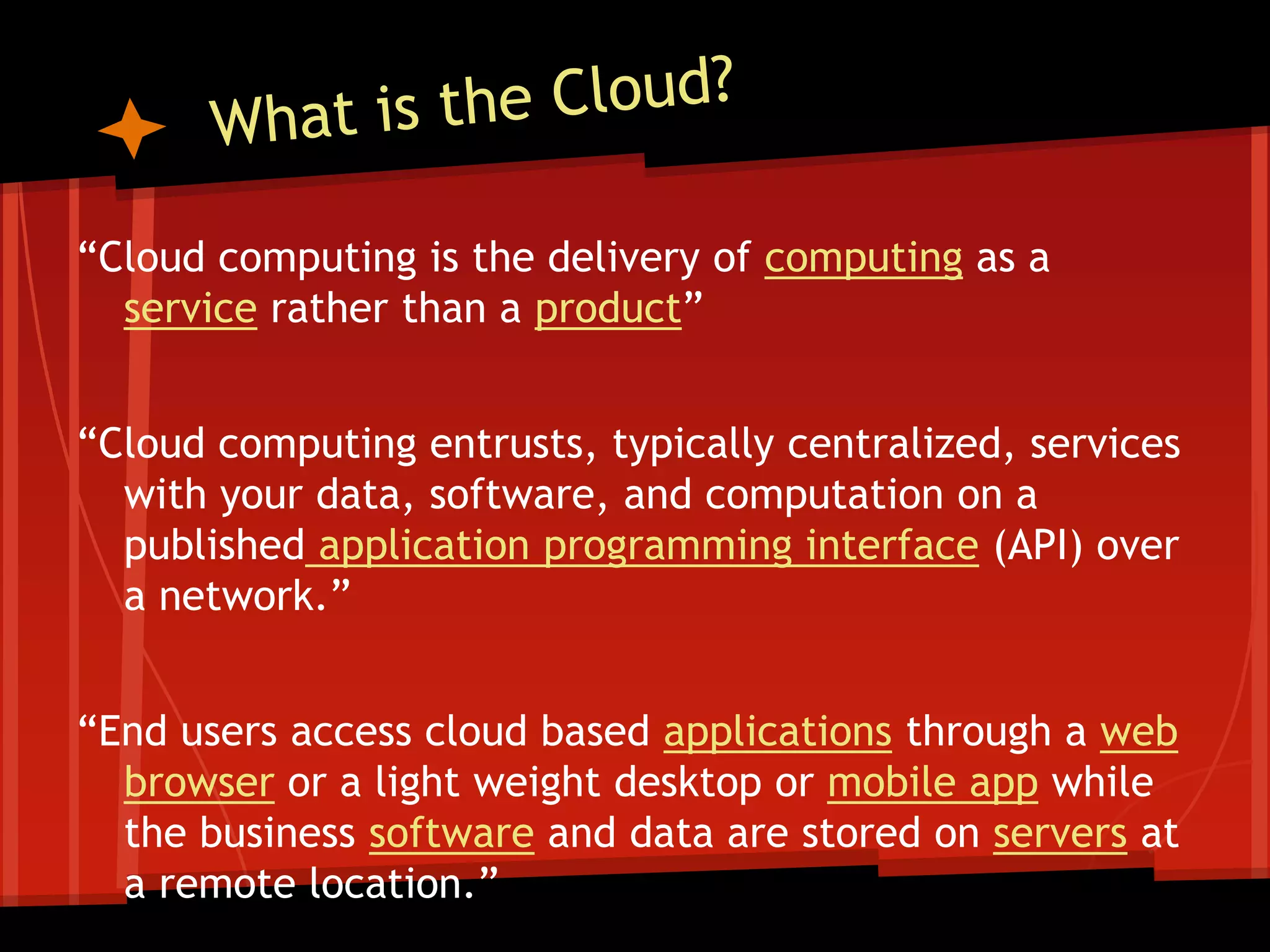 Cloud computing delivers computing resources as a service over the internet. Users access cloud-based applications through a web browser or mobile app, while software and data are stored on remote servers managed by cloud providers. There are three main cloud service models: Infrastructure as a Service provides basic computing resources; Platform as a Service provides operating systems and platforms; and Software as a Service provides applications without requiring users to manage infrastructure. Public clouds offer services to the general public, while private clouds are for internal use within an organization.