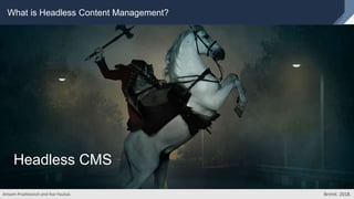This document provides an overview of headless content management and Sitecore JavaScript Services (JSS). It discusses what headless CMS is, what JSS is, and the different approaches for starting a JSS project. It also covers the installation process, application structures, deployment workflows, key features like the layout service and dictionary service, and considerations for multilingual and multi-site implementations.