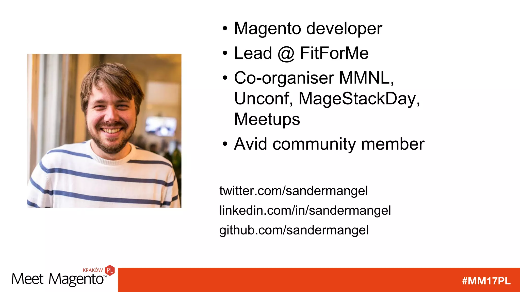 The document discusses headless architecture and implementing it for Magento. It describes taking business logic and data out of Magento and exposing it via APIs that can then be consumed by various clients like Magento and other systems. This allows isolating domains and insulating systems from future changes. It recommends using lightweight PHP frameworks and standard libraries to build the APIs and services, and addresses issues like data storage, caching, and output formatting.