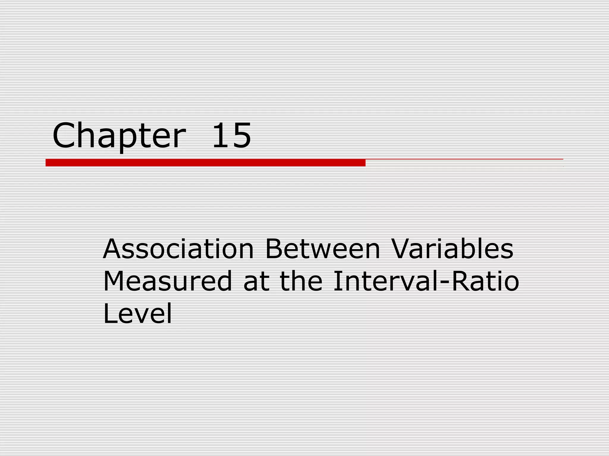 This document discusses the relationship between variables measured at the interval-ratio level. It provides examples of how to interpret scattergrams and the regression line to assess the strength and direction of relationships between two variables. It also explains how to calculate Pearson's correlation coefficient r and how r values between 0 and 1 indicate the strength of association between variables. r values closer to 1 represent stronger relationships.
