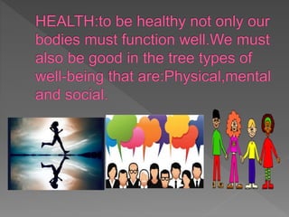 This document discusses health solutions and disease prevention. It recommends exercising regularly, eating a healthy diet with more vitamins/proteins than fats, getting adequate rest and sleep, practicing good hygiene and posture. It also provides tips to prevent the spread of disease like washing hands, cooking food thoroughly, avoiding sharing utensils, and keeping homes clean. The document outlines different types of diseases like acute vs chronic, infectious vs non-infectious, and how diseases are transmitted through various means. It also briefly discusses medicines, vaccines, surgery and organ transplants as solutions to cure or prevent illness.