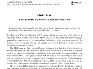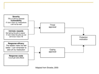 3) Protection Motivation Theory assesses threat and coping appraisal processes. Response costs have the strongest impact on health behaviors and attitudes.