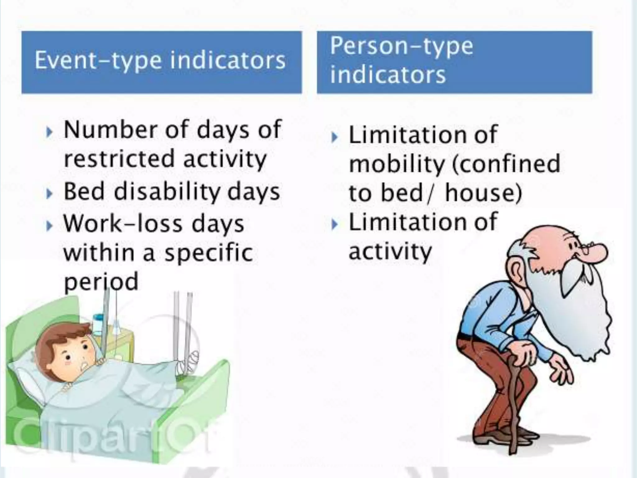 This document discusses health indicators and their use in measuring health status and goals. It defines health indicators as variables that can directly or indirectly measure health changes. The document then describes different types of indicators (e.g. mortality, morbidity), provides examples (infant mortality rate, life expectancy), and discusses how indicators can be classified (e.g. by type, related to inputs/outputs). It also outlines ideal characteristics of indicators and describes several specific health indicators in detail like mortality and nutritional status indicators.