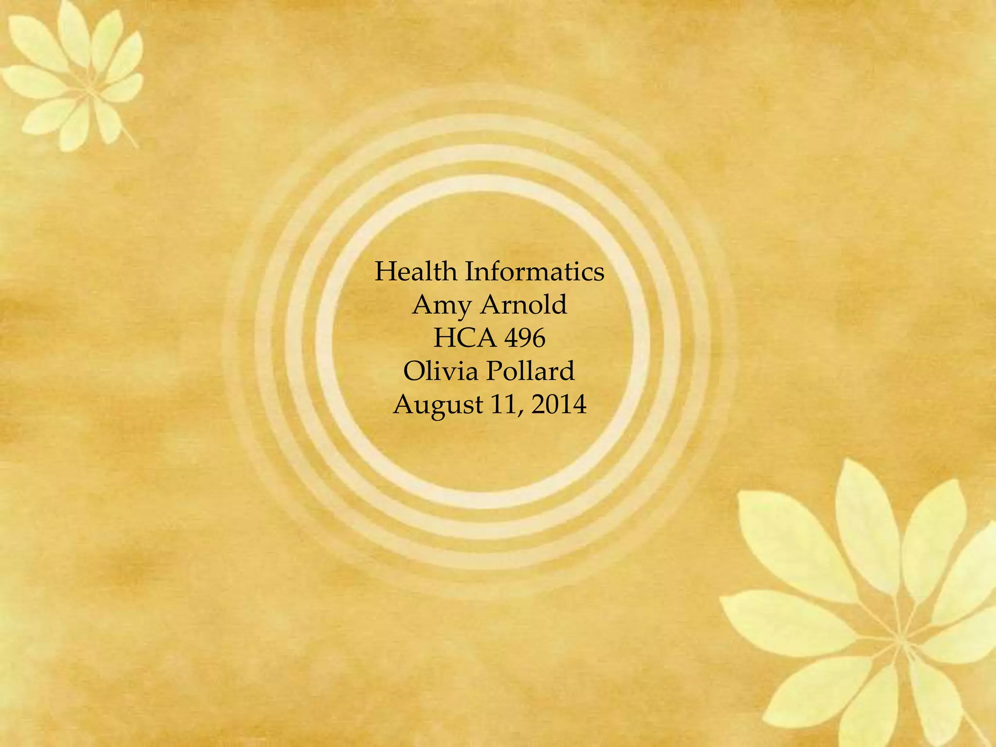 Amy Arnold works in various departments at a local North Carolina hospital and has gained experience in emergency department, medical staff office, information technology, performance improvement, and health information management over six years. She is interested in the role of health informatics in healthcare. Over six blog posts, she will discuss the evolution of health informatics, legal and ethical issues in health information management, the use and impact of statistics and electronic medical records in healthcare, current health information systems, and continuous quality monitoring and accreditation.