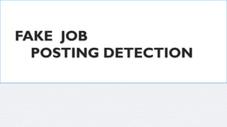 • automatedsystem that uses machine learning (ML) techniques to detect fake job postings more