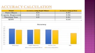 The document presents a project on health prediction analysis using data mining, highlighting the necessity and benefits of data mining in healthcare, such as preventing epidemics and reducing treatment costs. It discusses various applications including personalized treatment planning, disease prediction, and hospital management, while detailing the algorithms and technologies used in implementing the project. The ultimate goal is to develop a model that predicts patient health status from electronic health records, thereby improving diagnosis and treatment decisions.