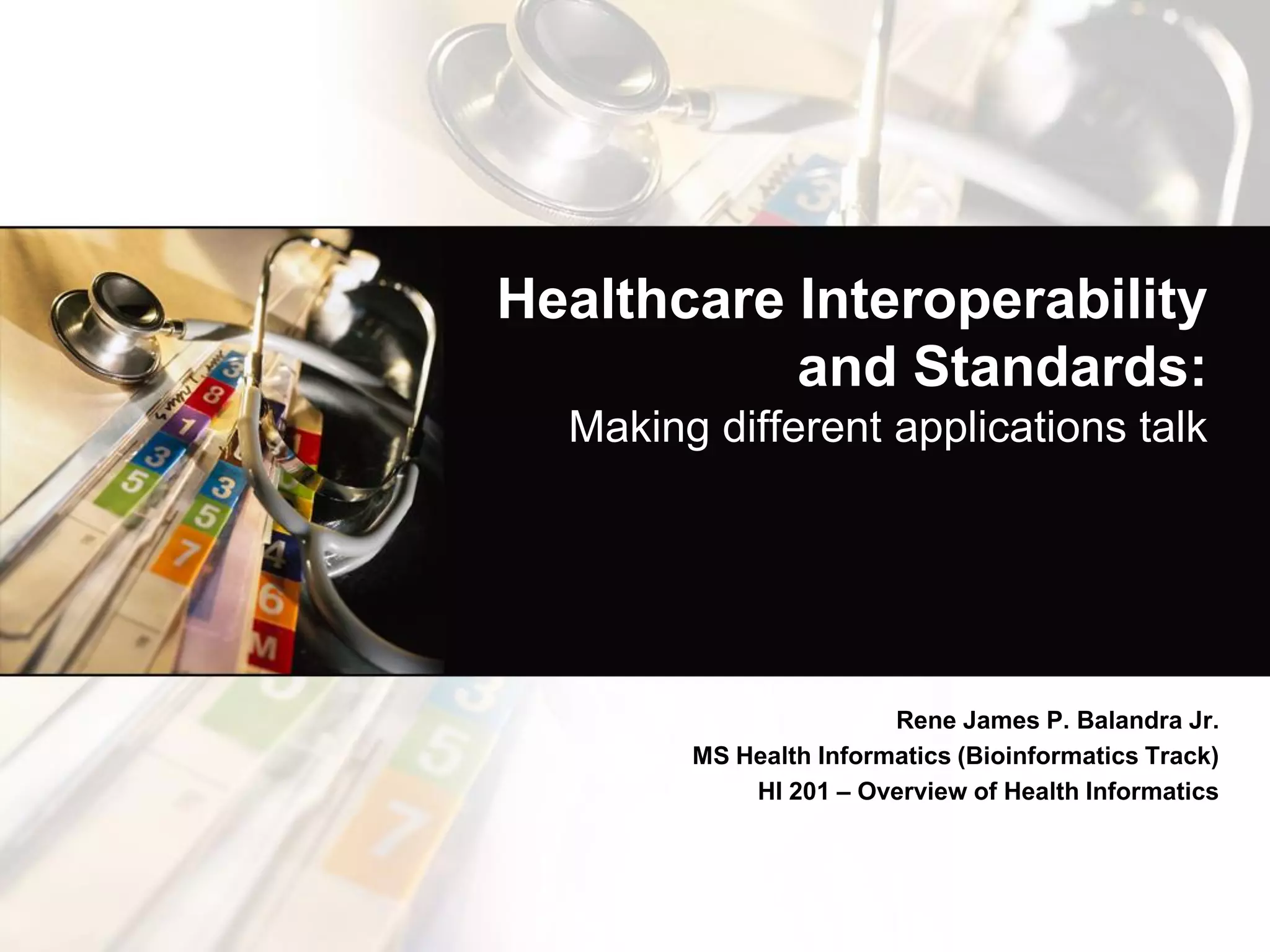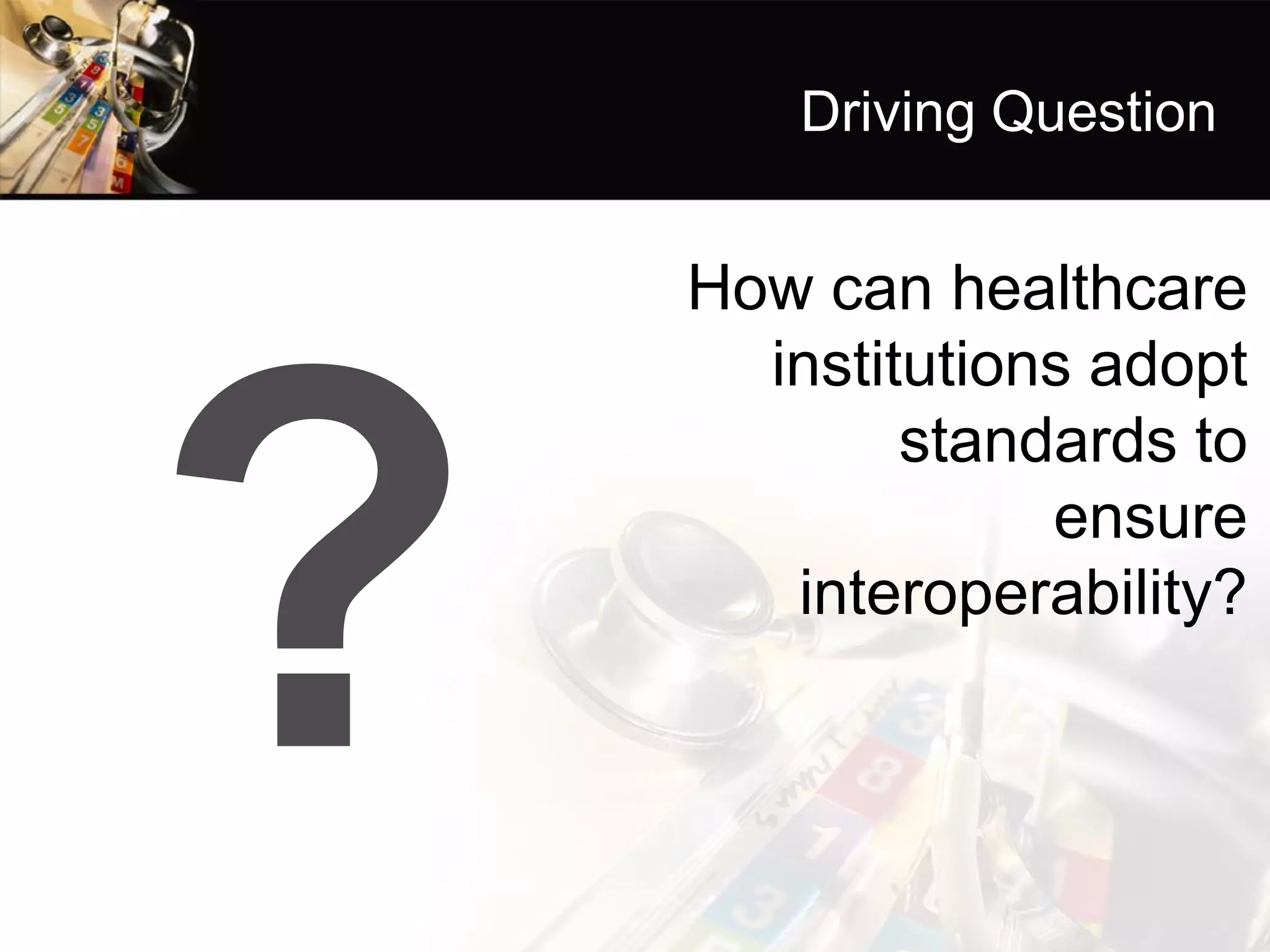 The document discusses healthcare interoperability and standards, focusing on how disparate healthcare systems can share critical patient information. It presents a specific scenario involving local health units and their use of an electronic medical record system to report cases of chronic diseases to a national registry. Key goals include improving information flow, data accuracy, and establishing standards to ensure consistency across different applications.