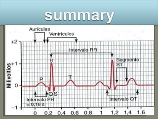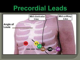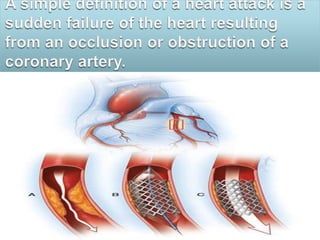 The document discusses cardiac markers, which are substances released when heart muscle is damaged during a myocardial infarction (heart attack). Some common cardiac markers measured in blood tests include troponin and CK-MB. Elevated levels of these markers can help diagnose a heart attack. The document also provides information on electrocardiograms (ECGs), echocardiograms, cardiac MRI, stress tests and other tests used to evaluate the heart.