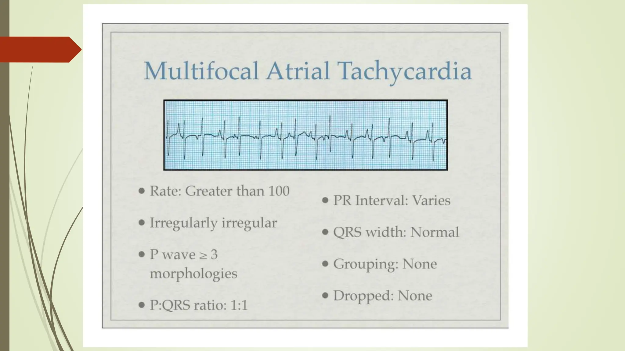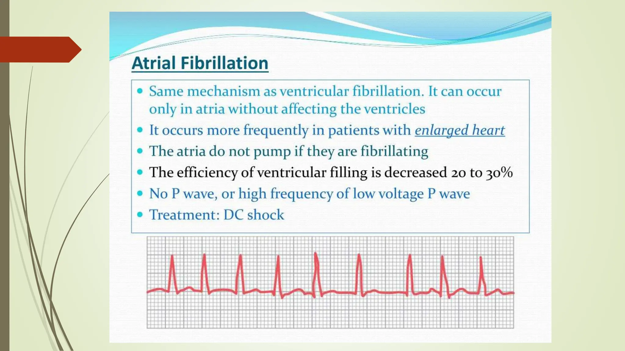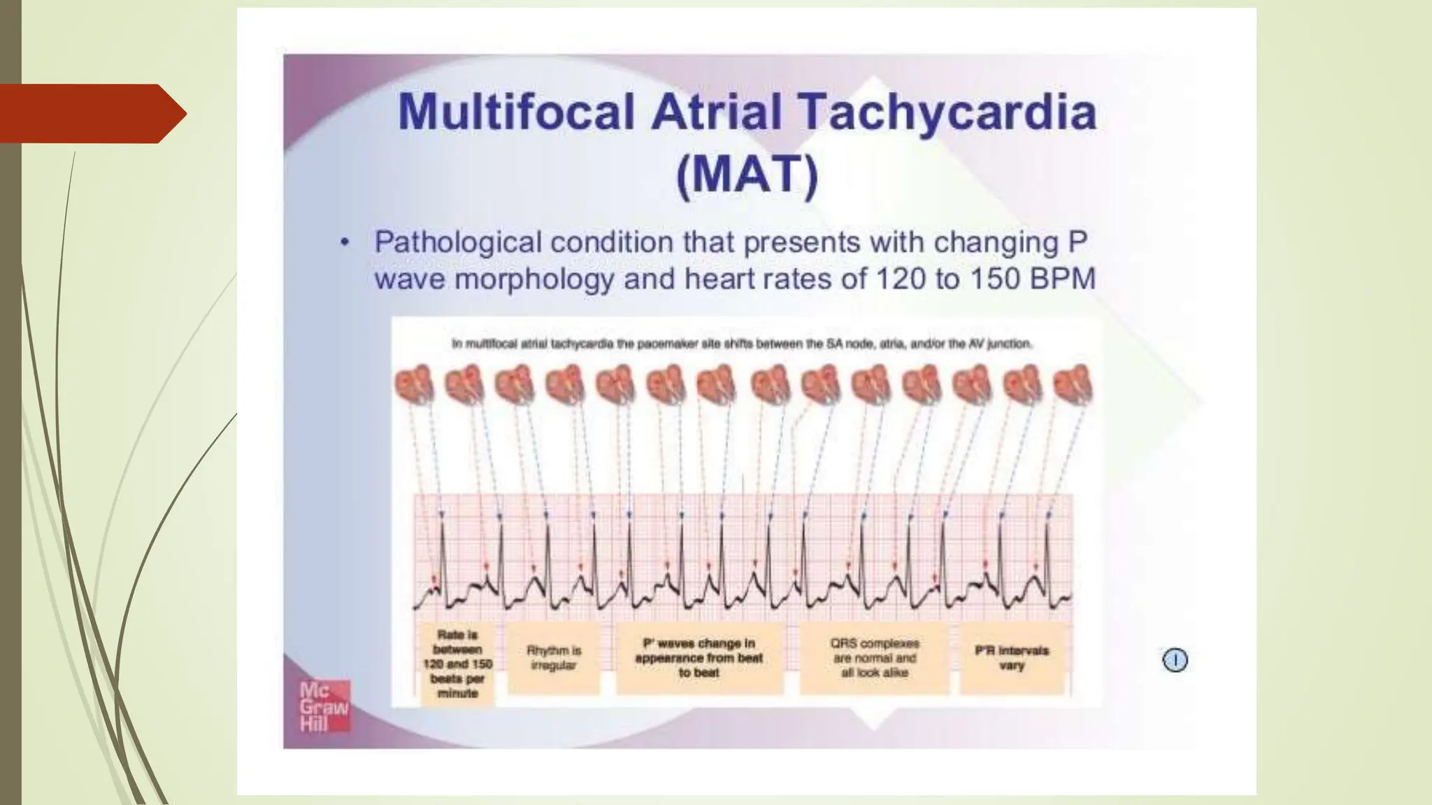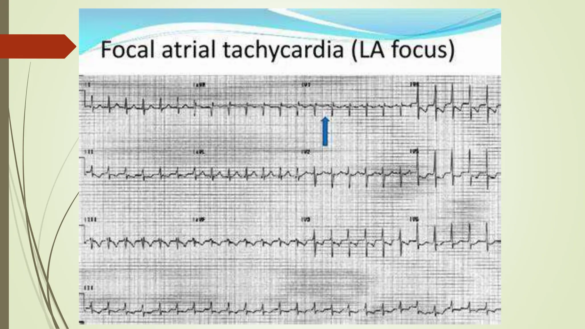 The document discusses various types of atrial flutter, including those with different block patterns such as 2:1, 4:1, and variable blocks, as well as conditions like high-grade AV block and 1:1 block. It also mentions AV nodal reentry tachycardia (AVNRT) and its reversion to sinus rhythm after an adenosine bolus. Additionally, atrial fibrillation is briefly referenced.