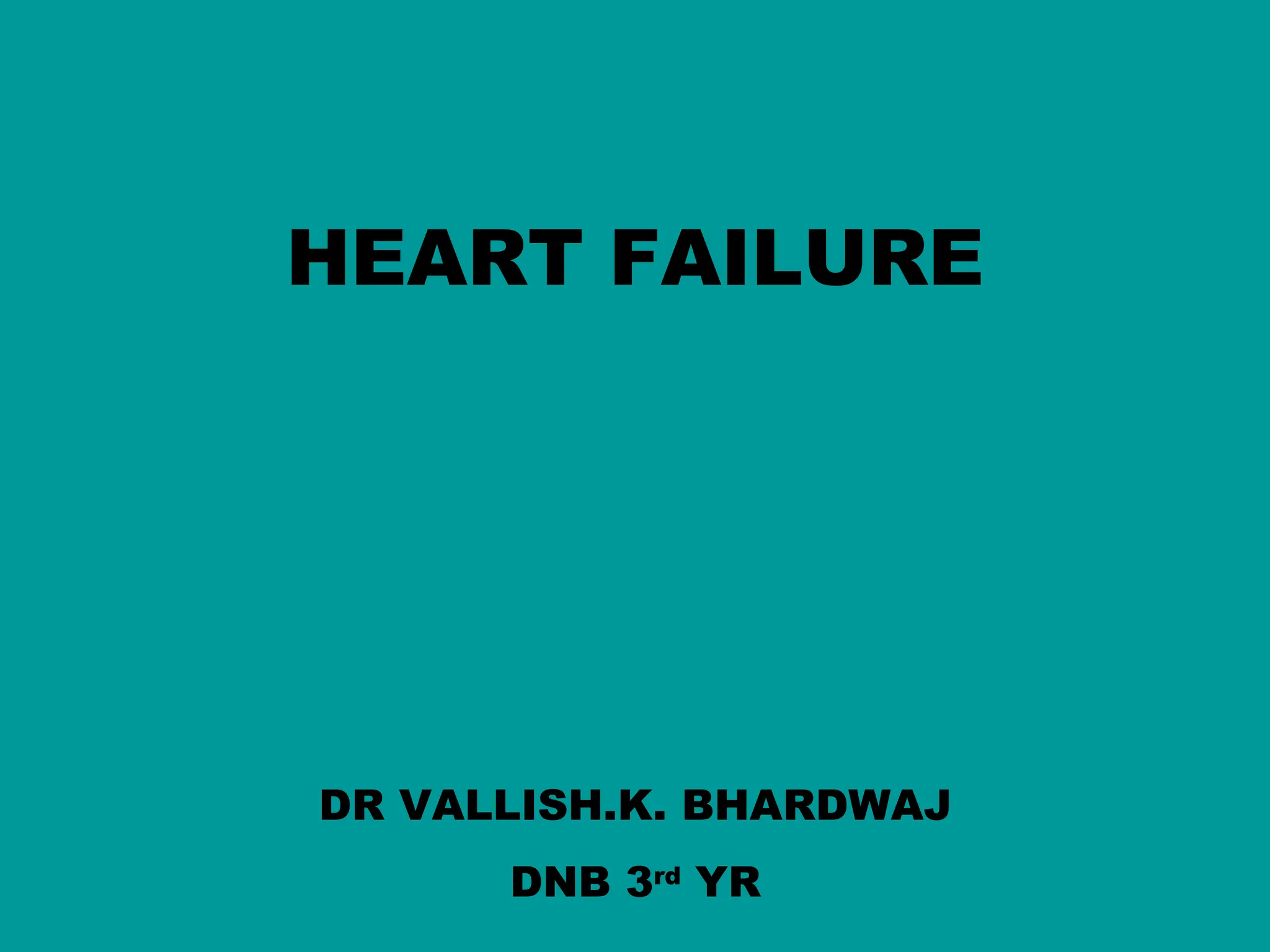 This document provides an overview of heart failure, including its definition, etiology, pathophysiology, symptoms, diagnosis, and treatment. Some key points: