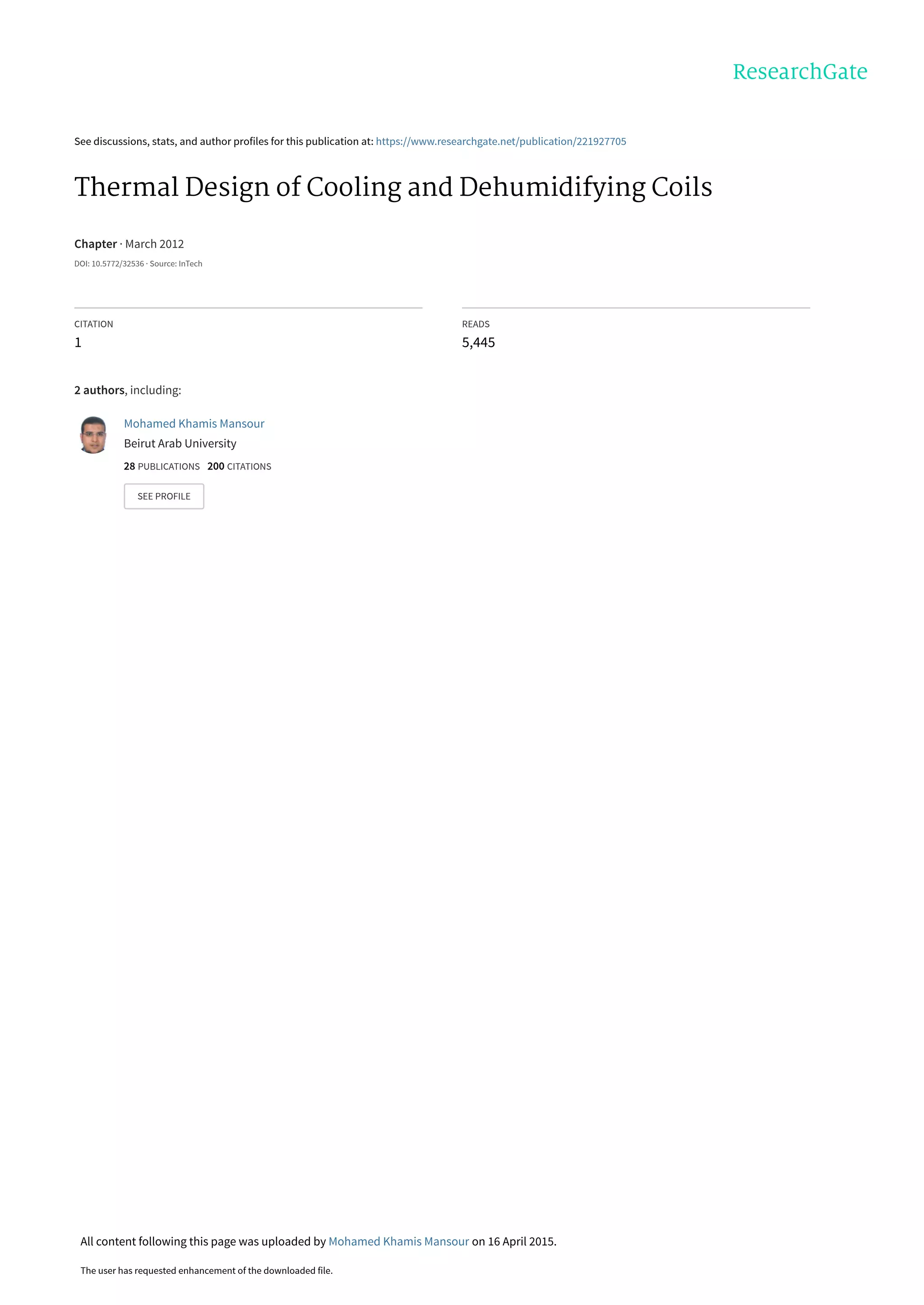 The document discusses the thermal design of cooling and dehumidifying coils. It describes: