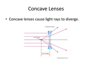 This document discusses key concepts relating to heat, light, and sound. It explains that heat is a form of energy transfer between objects due to temperature differences, and can occur through conduction, convection, or radiation. Light is described as a form of electromagnetic radiation that can be reflected, refracted, or absorbed when it interacts with different materials and surfaces. Sound is defined as vibrations that travel in air, liquids, or solids in longitudinal waves, and its characteristics like frequency and pitch are determined by the rate and strength of vibrations. The document also provides an overview of vision and optical phenomena like refraction in the eye and lenses.