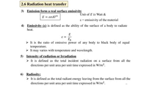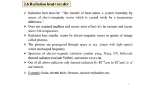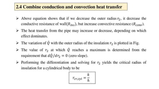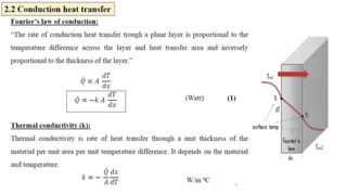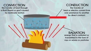 The document explains the concepts of heat transfer and thermodynamics, emphasizing that energy is the capacity to do work and heat energy is the transfer of energy due to temperature differences. It outlines the methods of heat transfer, primarily conduction, and distinguishes between thermal conductors and insulators. The document also illustrates practical applications of heat transfer principles in heating systems and various materials.