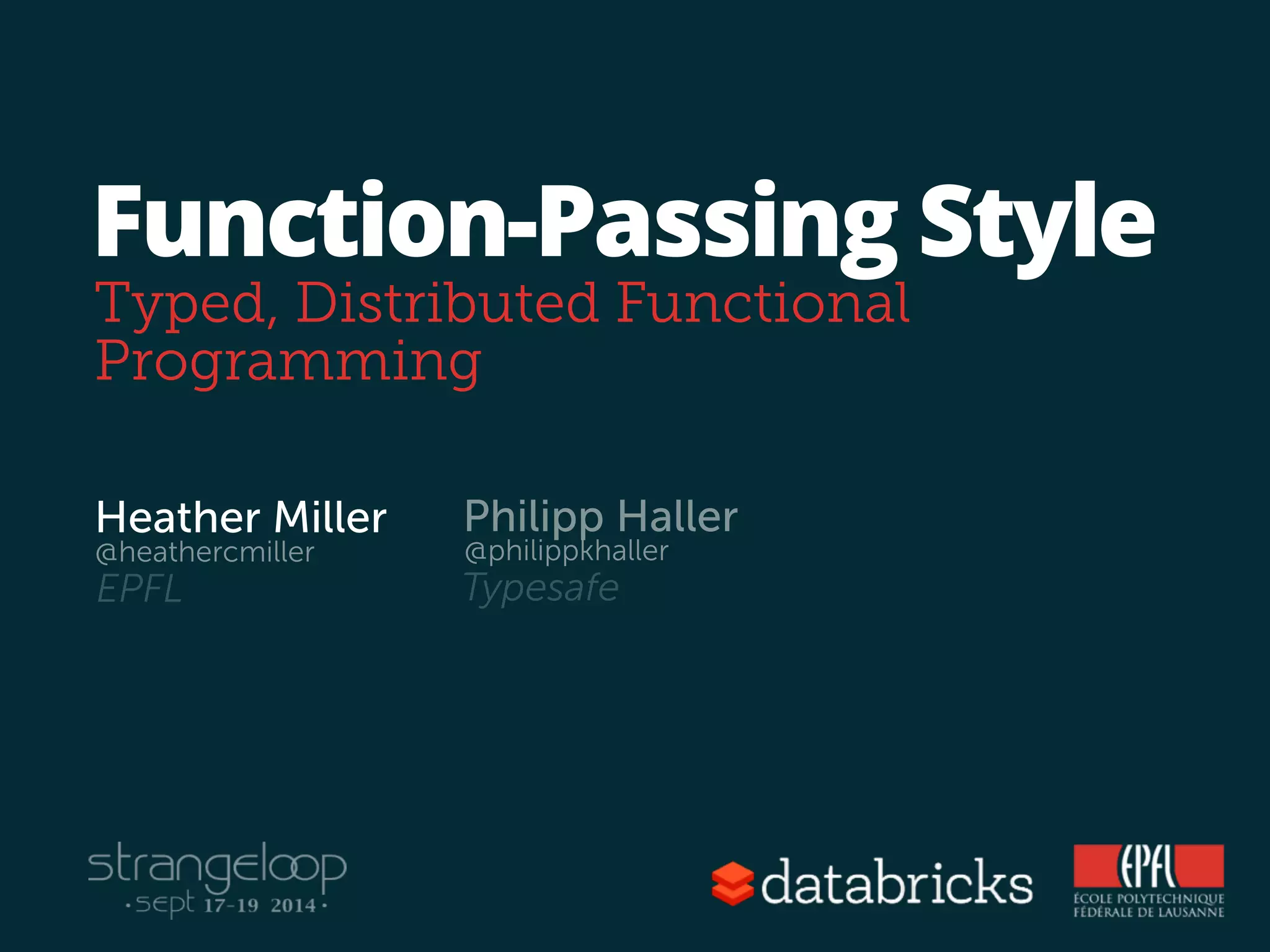 This document discusses a function-passing programming model for distributed systems. The key concepts are: