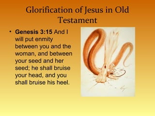 Chapter 8 discusses the glorification of Jesus in the Old Testament through various scriptural references, highlighting His everlasting dominion and the superiority of the new covenant over the old. It emphasizes that the new covenant, which offers a transformative relationship and complete forgiveness, is rooted in grace rather than law. The document contrasts the earthly tabernacle and sacrifices with their heavenly counterparts, underscoring the enduring nature of Jesus' ministry.