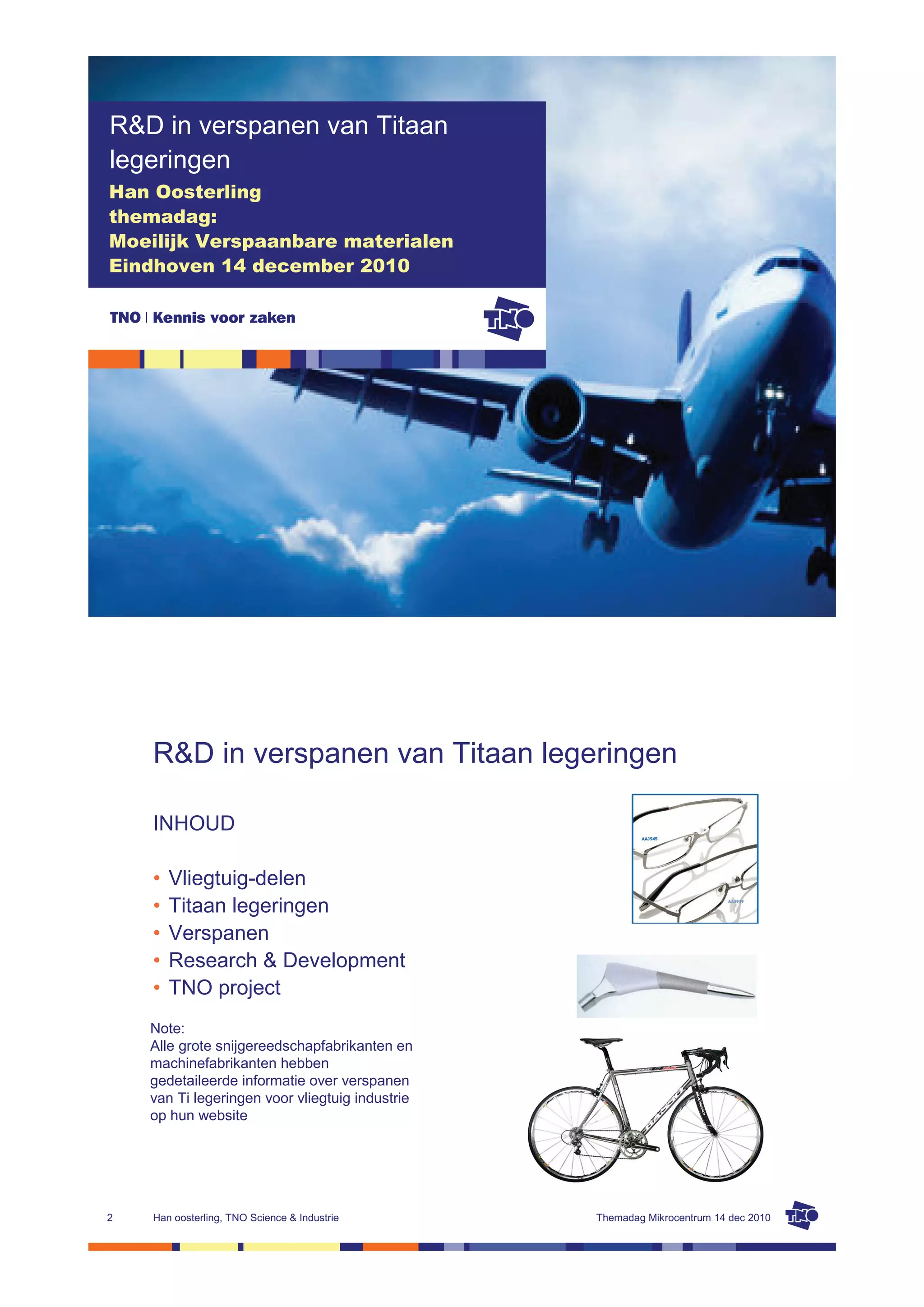 This document discusses machining of titanium alloys. It covers titanium alloys used in aircraft components, challenges in machining titanium, and research into improving the machining process. New titanium alloys and machining techniques like laser sintering are being developed to increase material removal rates and machining accuracy at higher temperatures and speeds. A knowledge transfer project is also discussed to share information between materials suppliers, machine builders, toolmakers and end users.