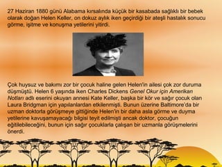 olarak doğan Helen Keller, on dokuz aylık iken geçirdiği bir ateşli hastalık sonucu