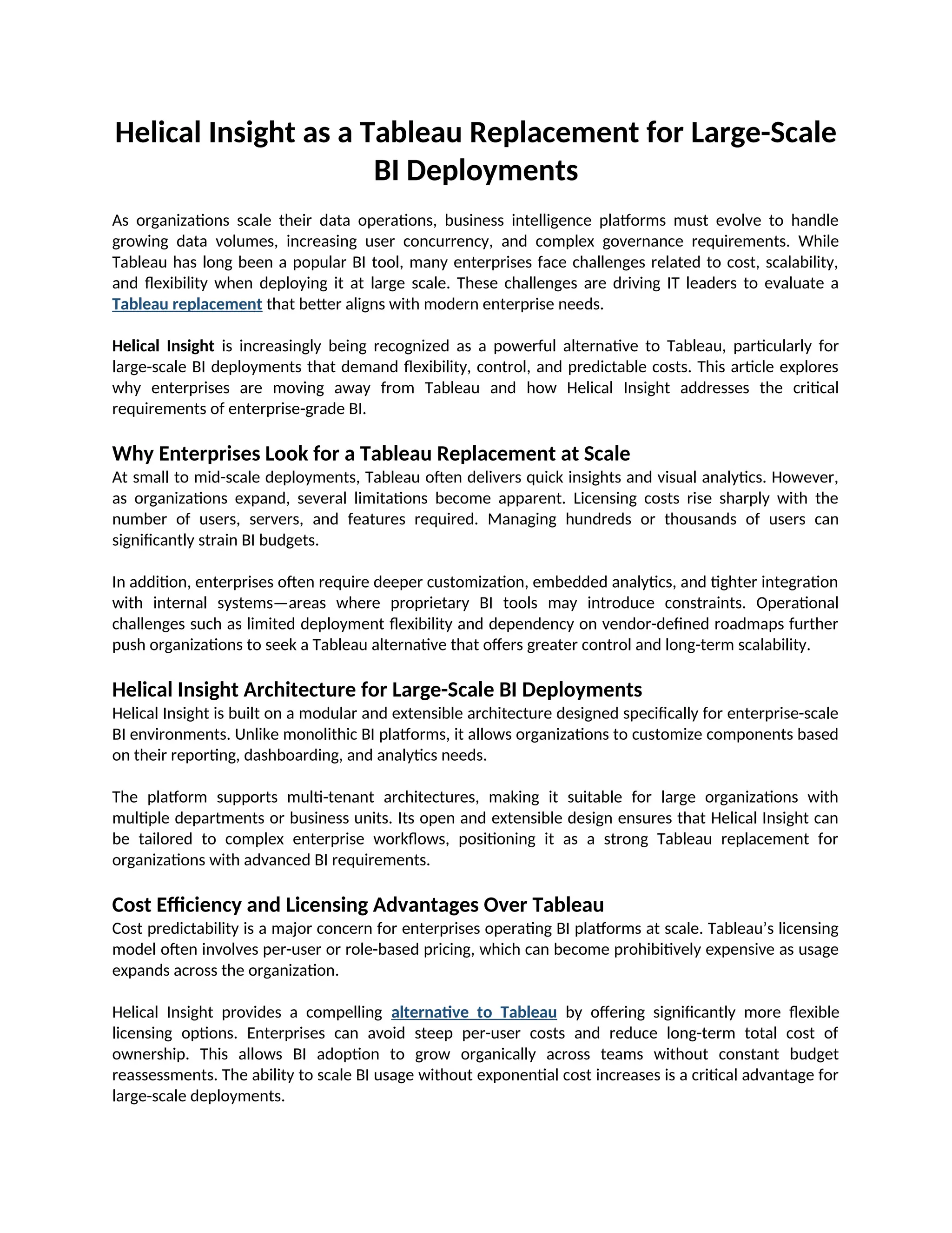 As organizations scale their data operations, business intelligence platforms must evolve to handle growing data volumes, increasing user concurrency, and complex governance requirements. While Tableau has long been a popular BI tool, many enterprises face challenges related to cost, scalability, and flexibility when deploying it at large scale. These challenges are driving IT leaders to evaluate a Tableau replacement that better aligns with modern enterprise needs.